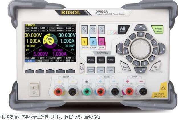 DP832A是一款高性能的具有三路输出的可编程线性直流电源。它拥有纯净输出,优异的性能指标,多种分析功能,丰富的接口,可满足多样化的测试需求。