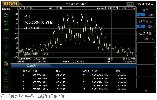 DSA700系列频谱分析仪,最高频率可达到1GHz,采用全数字中频技术,保证其具备卓越的指标和稳定的性能,相比模拟频谱仪具有更高的性价比。DSA700系列提供针对2FSK调制的遥控器、汽车钥匙等信号测量分析功能。在SSC模式下的2FSK调制信号测量分析功能,既保留了数字频谱分析仪的稳定和集成特性,又兼顾模拟频谱分析仪的快速捕获特性。独创宽屏的设计,外观新颖,操作简便,是射频研发、设计验证、生产制造和教育培训的理想选择。