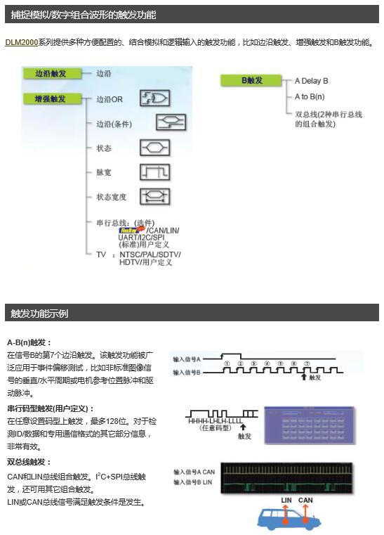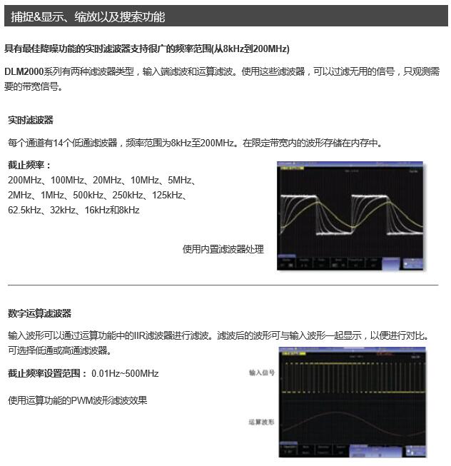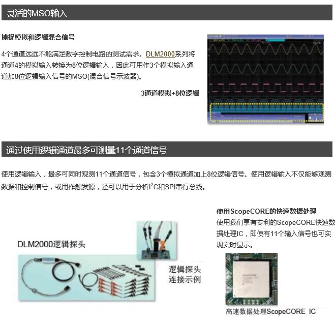DLM2000是台式数字信号示波器,可用于设计和调试电子器件。它采用人体工程学设计,使用方便,并且包含了很多功能。其带宽为200至500MHz,存储器为12.5到125MP,确保总有一款DLM2000能满足您的应用和预算。使用DLM2000行业领先的DLMmicrositeimagewebspace“灵活MSO输入”,您可以选择通道4作为模拟输入,或用它采集8位逻辑信号。现代电子器件包含模拟和数字电路,而使用DLM2000灵活的MSO输入,您可对两者进行测量,包括混合信号触发以及并行或串行总线的解码。