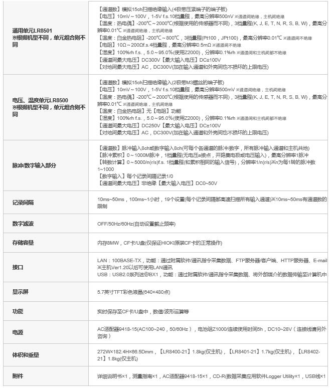 | 标配1个相当于电压温度单元LR8501(15ch)和电压、温度单元LR8500(15ch)。 | |