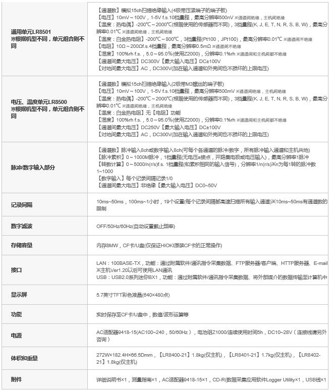 标配1个相当于电压温度单元LR8501(15ch)和电压、温度单元LR8500(15ch)。