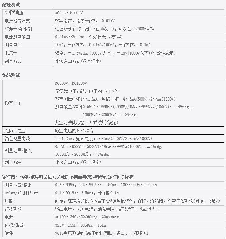 | 可以在自动测试模式下连续绝缘耐压、耐压绝缘测试 | |