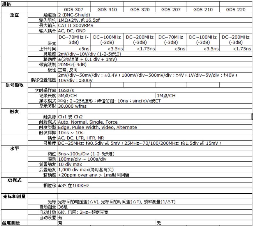 *每通道最大5M记录长度(GDS-300 Series),1M记录长度(GDS-200 Series)
