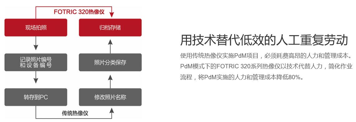改变会引发应激反应,可平滑升级的FOTRIC 320系列热像仪很大程度舒缓习惯CM工作人员的反应强度,帮助设备经理更平稳和快速的推动维护部门进入PdM。