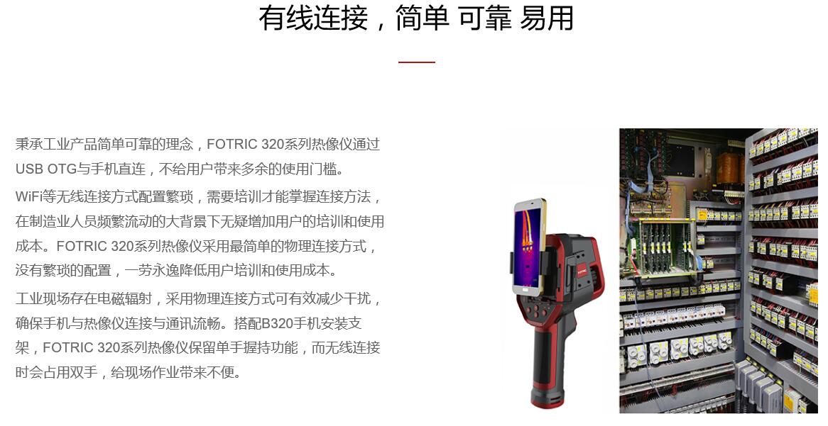 FOTRIC 320系列热像仪既坚固耐用、便携、精准,胜任目前的设备诊断任务,又开创性将热像仪和手机融合,升级成满足PdM需求的热像数据终端。